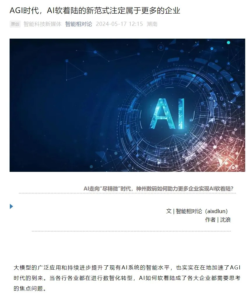 媒体的广泛关注和深入解读,为710公海的未来发展注入了坚定信心与强劲动力。在企业数字化转型的浪潮中,710公海将继续以AGI时代新价值主张为导向,持续深化全栈AI加速引擎能力,积极探索AI与产业深度融合的落地路径,助力企业打造AI时代的新范式。