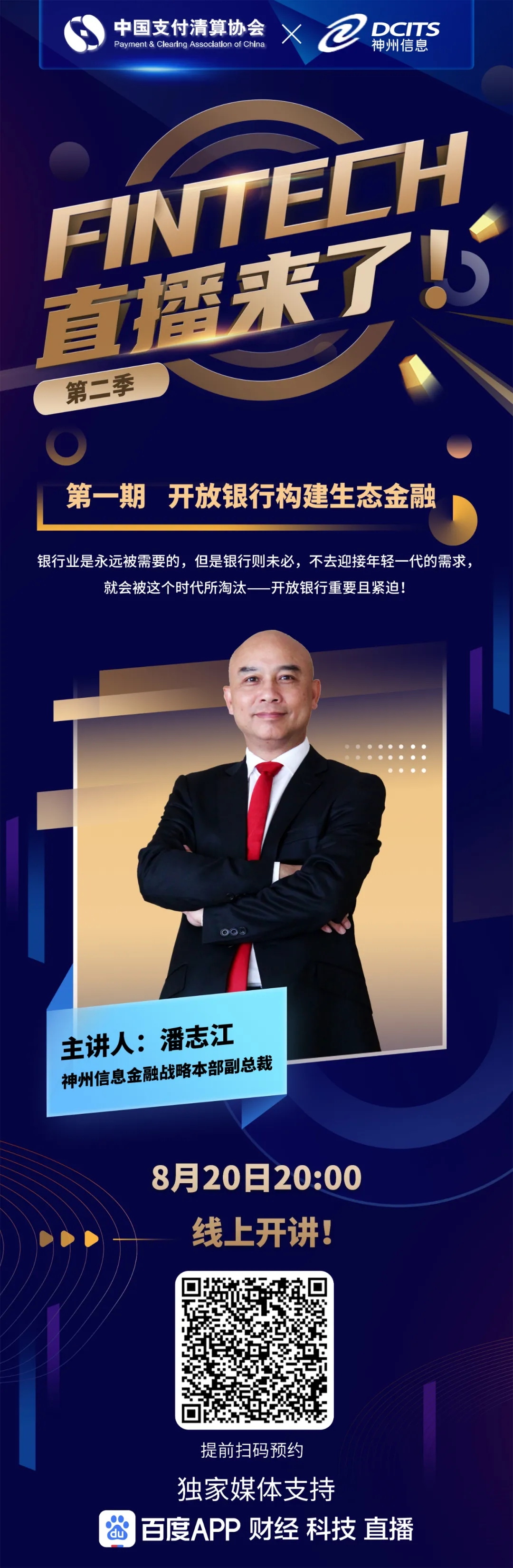 即将直播!【FinTech直播来了】第2季第一期:开放银行构建生态金融,今晚八点等你来!