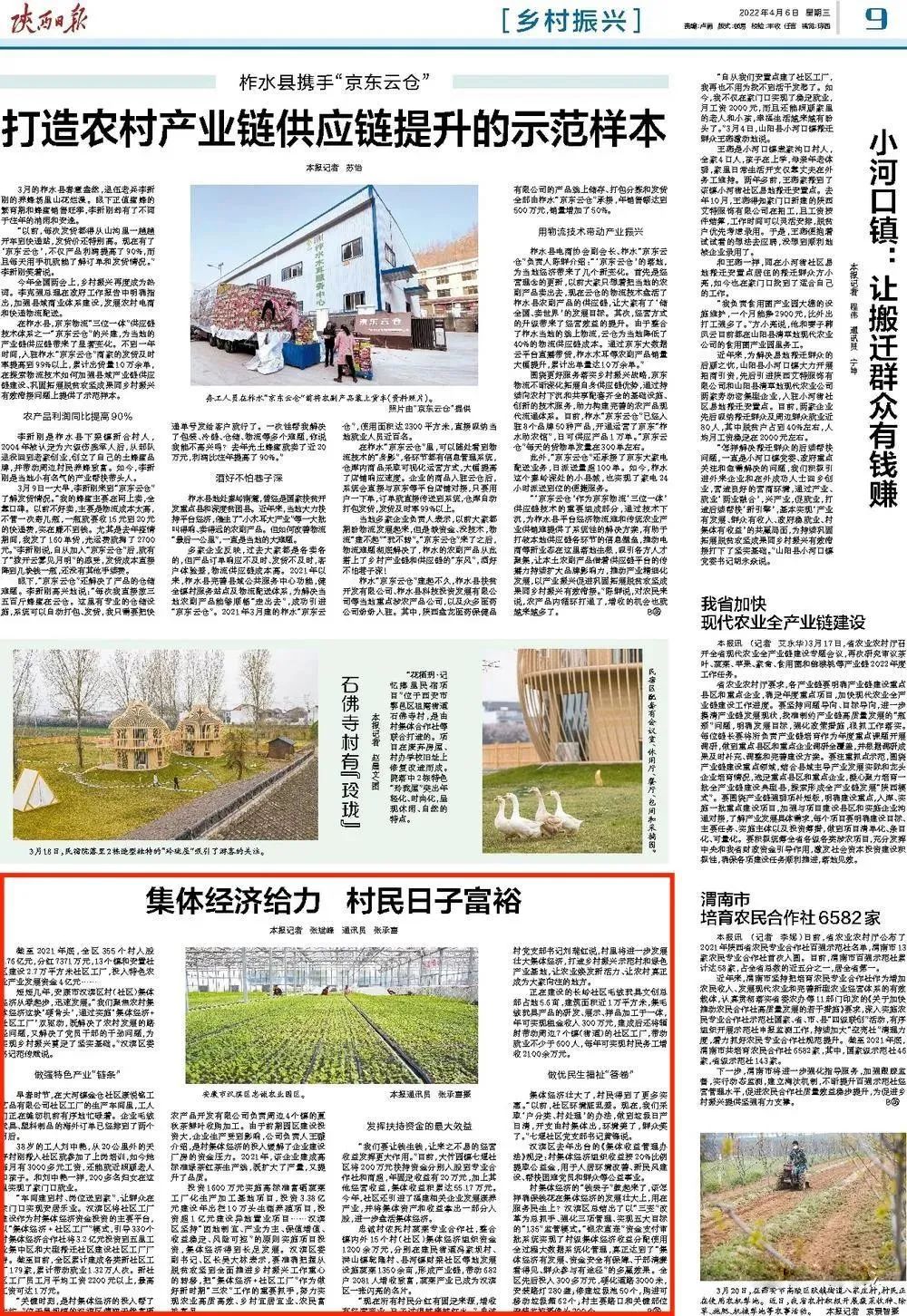 场景金融 | 《陕西日报》深度报道神州信息汉滨区村集体经济+社区工厂工作经验