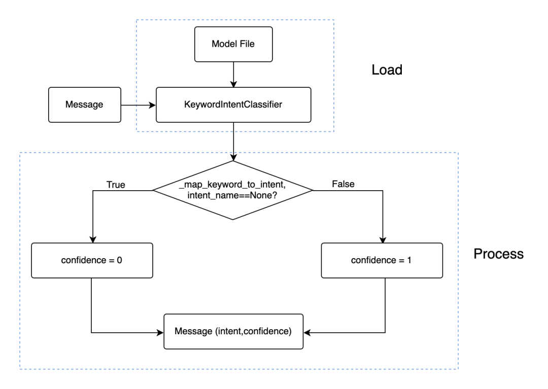 KeywordIntentClassifier类主要由train,process,persist和load四部分组成,