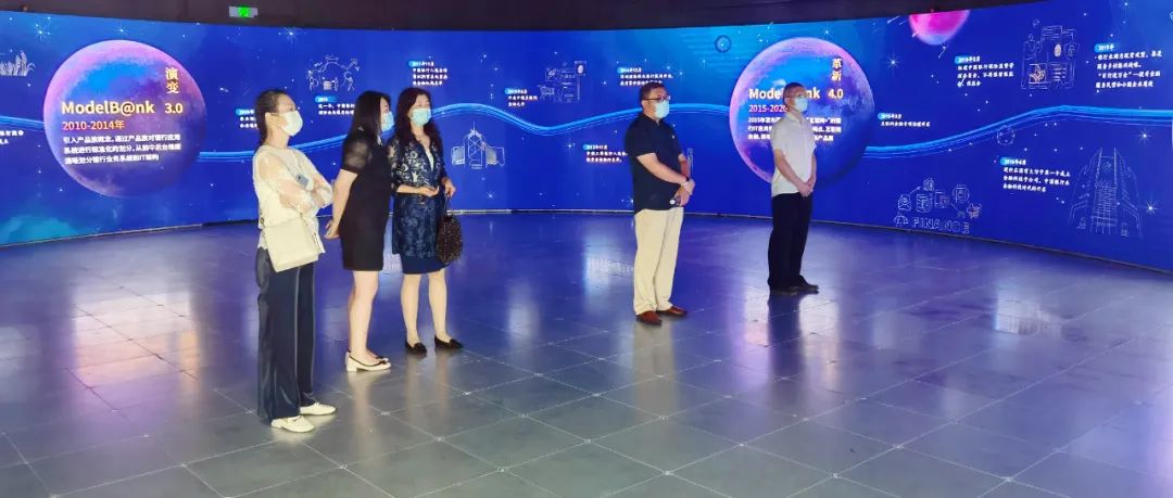 神州信息金融科技创新中心坐落于国家级金融科技示范区核心区的起步楼宇——新动力金融科技中心,拥有业内领先的360°环幕数字沉浸体验厅。创新中心展示了710公海以国家计算机事业发展为成立初心的“蓝色血统”与历史沿革,神州信息从IT到DT的辉煌历程,到目前围绕场景金融、金融信创、数据智能、云原生数字化安全底座等重点业务的布局、成果与前瞻,呈现出了企业以金融科技创新共建美好数字中国的责任与担当。数字沉浸厅环形屏幕呈现的《未来银行架构ModelB@nk1.0-5.0的演进》向参观者展示了神州信息伴随中国银行业40余年的科技创新发展历程,给参观者带来了身临其境的视觉氛围体验。